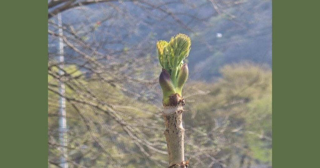 - 뿌리 채취 (늦가을): 두릅나무가 잎을 떨어뜨린 후, 엄지 손가락 굵은 뿌리를 일부 잘라옵니다. 나무에 심한 피해를 주지 않도록 조심하며 채취하고, 반드시 본인 소유지 또는 허가된 곳에서만 채취하세요.